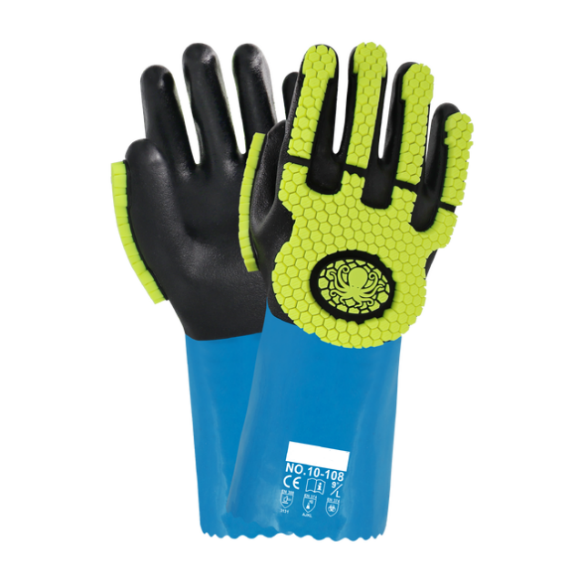 XYEHS 10-108 30cm Full PVC Coating Chemical & Impact Resistant Safety Work Gloves with TPR Knuckle & Fingers, Nylon Lining, Oil & Water Resistant, Acid & Alkali Resistant