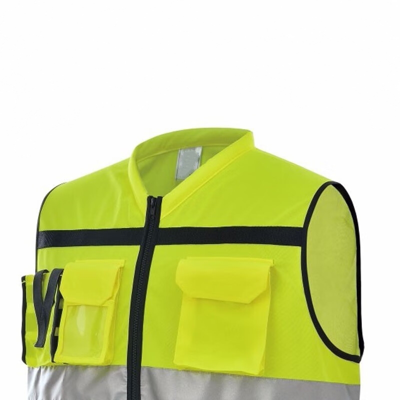 XYEHS A555 High Visibility Polyester Safety Vest with Multi-Functional Pockets, Zipper Closure, Reflective Strips for Construction, Outdoor Sports, Traffic