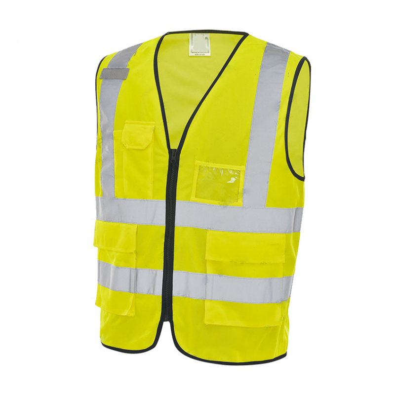 XYEHS A707 High Visibility Polyester Safety Vest with Pockets, Zipper Closure, Reflective Strips for Construction, Outdoor Sports, Traffic Work,
