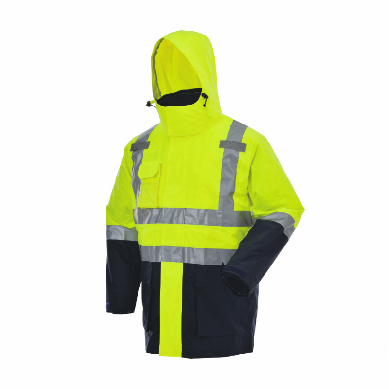 XYEHS B406 4 in 1 High Visibility Reflective Winter Thermal Safety Jacket with Cotton Padded Inner, Insulated Parka, Wind/Rain/Snow/Cold Proof