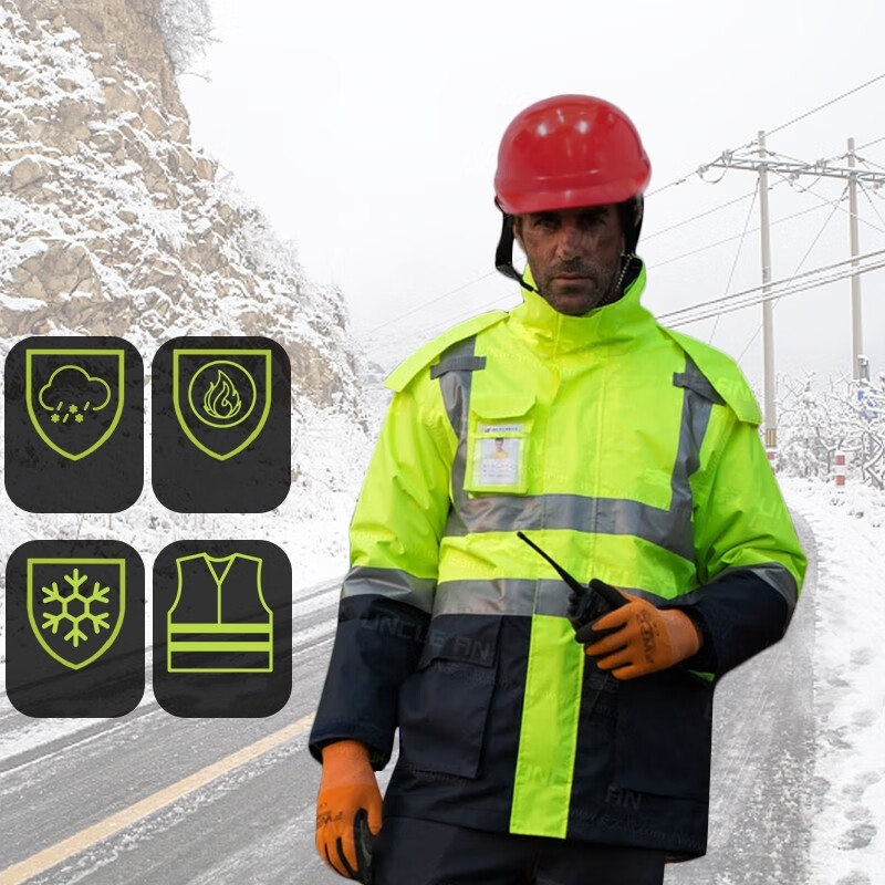 • 4-in-1 Outdoor Winter Coat:  It serves 4 different functions: high visibility jacket, windbreaker, rain jacket and insulated winter coat. Fluorescent yellow jacket with reflective silver strips which provides 360° protection and makes you stand out in all weather condition. On cold windy days, you can wear the inner fleece jacket. On slightly rainy days, your are better off wearing the waterproof windbreaker jacket. For wet and snowy weather, connect and wear both the jackets to enjoy maximum warmth and protection all day.
