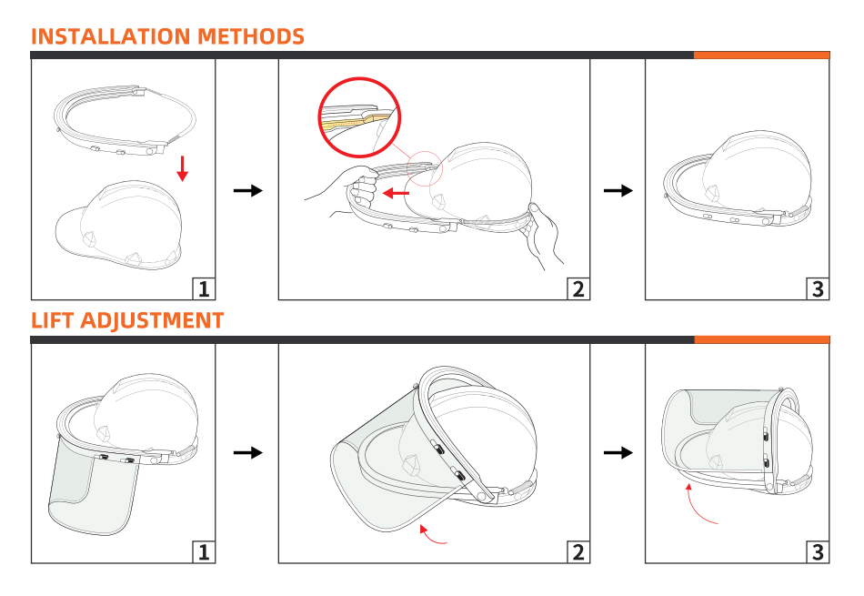 • Quick and Easy Visor Replacement: Visor brackets and visors can be assembled and taken apart easily and quickly, and used in combination.