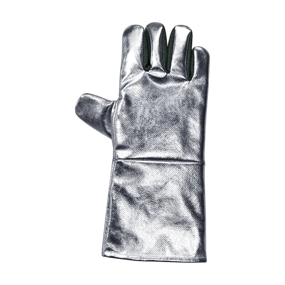 Blue Eagle AL145 Aluminized Heat Resistant Gloves, Full-Finger Safety Work Gloves, Flame Resistant & Thermal Radiation Reflective Safety Apparel, Insulation Gloves for Metallurgy, Stove, BBQ Gloves