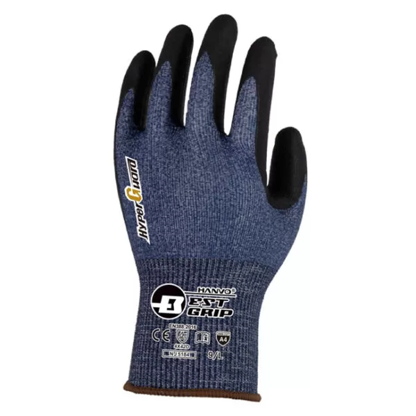 HANVO NJ5184 ANSI CUT A4 Cut Resistant Work Gloves, 15 Gauge HPPE/Steel/Polyester Liner, Abrasion Resistant, Oil Repellent, Nitrile Palm Coated