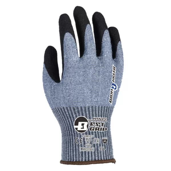 HANVO NXC3152 ANSI CUT A5 HPPE/Steel Cut Resistant Work Gloves, Abrasion Resistant, Oil Repellent, Nitrile Palm Coated, 13 Gauge Polyester Shell