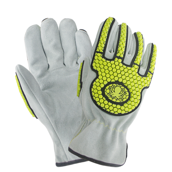 XYEHS 0524 Cowhide Cut & Impact Resistant Mechanical Gloves with Reinforcement Leather Palm, TPR Knuckle & Fingers, Abrasion Resistant