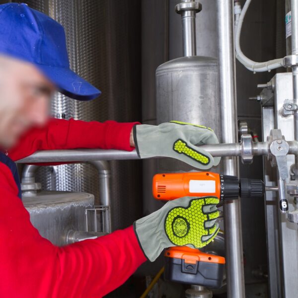 XYEHS 0531 Impact Resistant Mechanical Gloves with Anti-Slip Leather Palm, TPR Knuckle & Fingers