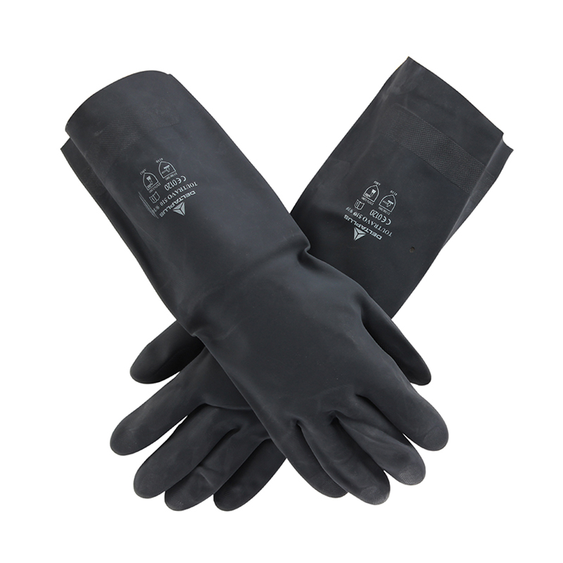 DELTA VE510 38cm Full Neoprene Coating Chemical Resistant Safety Work Gloves with Cotton Flocking Lining, Anti-Slip Palm, Acid & Alkali Resistant, Oil Resistant