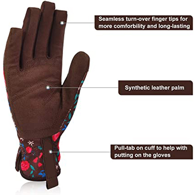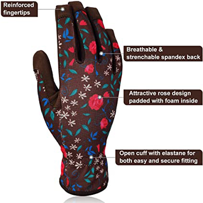 XYEHS Women Floral Synthetic Leather Gardening Gloves Weeding Working Gloves Thorn Proof for Digging, Planting, Pruning