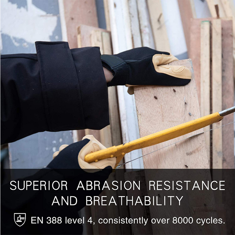 • HIGH-ABRASION: EN 388 level 4, consistently over 8000 cycles. 6-10 times greater than standard synthetic leather gloves.(Normal synthetic leather abrasion 800-1500 cycles)