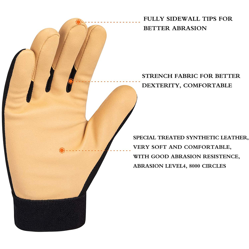 • SOFT AND COMFORTABLE: Stretch fabric at end of the fingers keeps super dexterity and flexibility. Treated soft synthetic leather palm and spandex back are both soft and comfortable