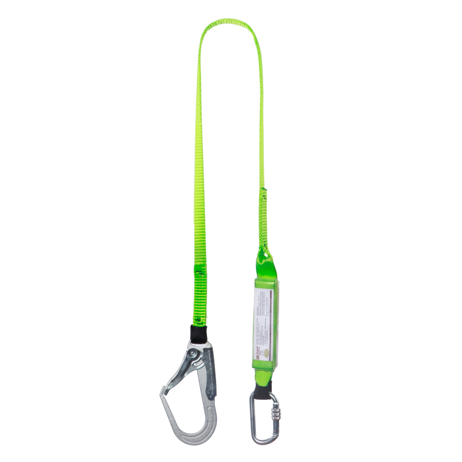 XYEHS EPI-31001C 4.5ft Single Leg Internal Shock Absorbing Safety Fall Protection Lanyard with Lock Carabiner & Pelican Rebar, 2.5mm Webbing