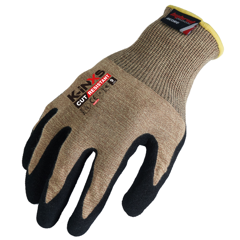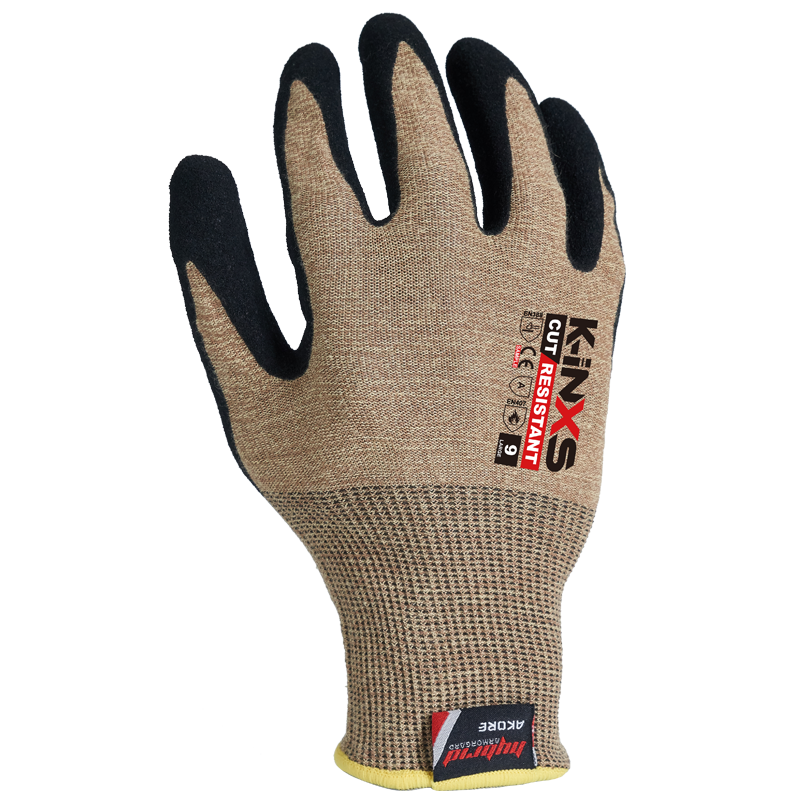 INXS A-5001 Cut Resistant Safety Work Gloves, Puncture Resistant, 18 Gauge Aramid/Basalt Liner with Sandy Foam Nitrile Coating on Palm, Hybrid Armorgard™ Akore Fiber, ANSI CUT A4, Light & Medium Cut Protection