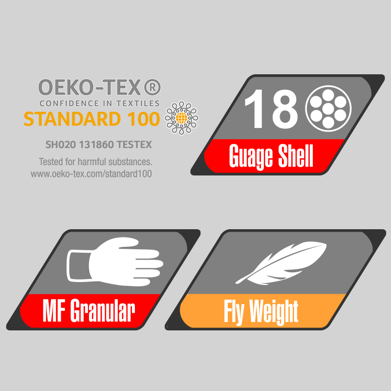 • Great Grip: A superfine granular textured palm dipped dual polymer coating that offers maximum precision grip of dry, wet & oily apparatuses
