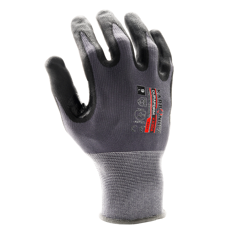 • Abrasion Resistance: Polyurethane & nitrile fusion coating palm with reinforced patch to thumb crotch offers  glove longevity and extra strength