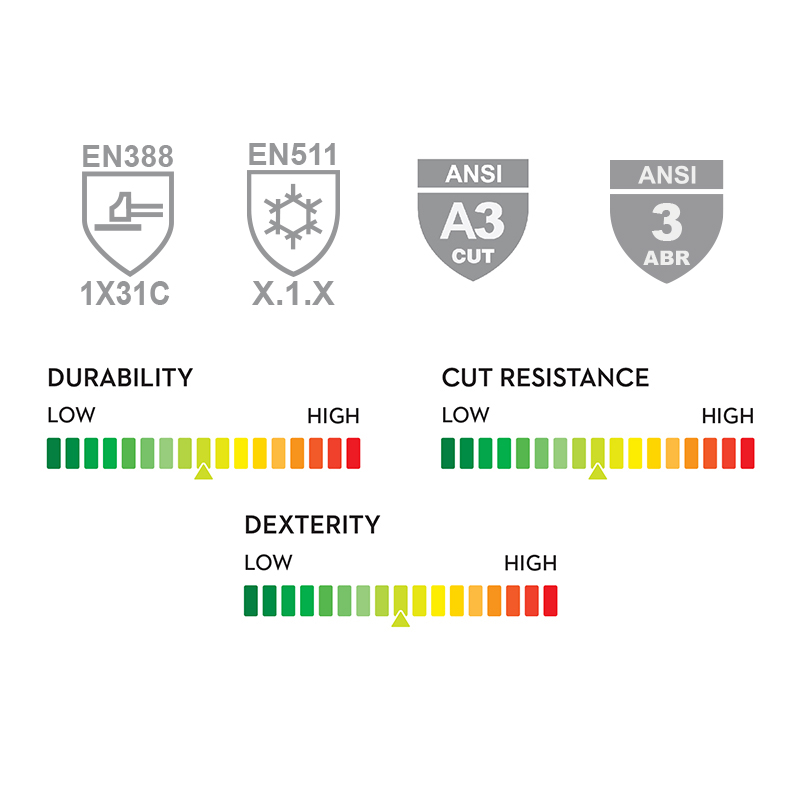 • Cut Resistance: The glove is made of cut resistant Hi-Viz heavyweight seamless 10g knitted shell,  anti cutting performance class C