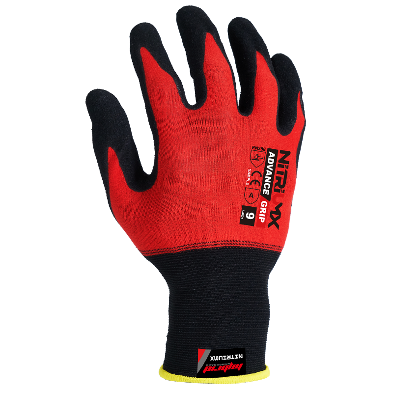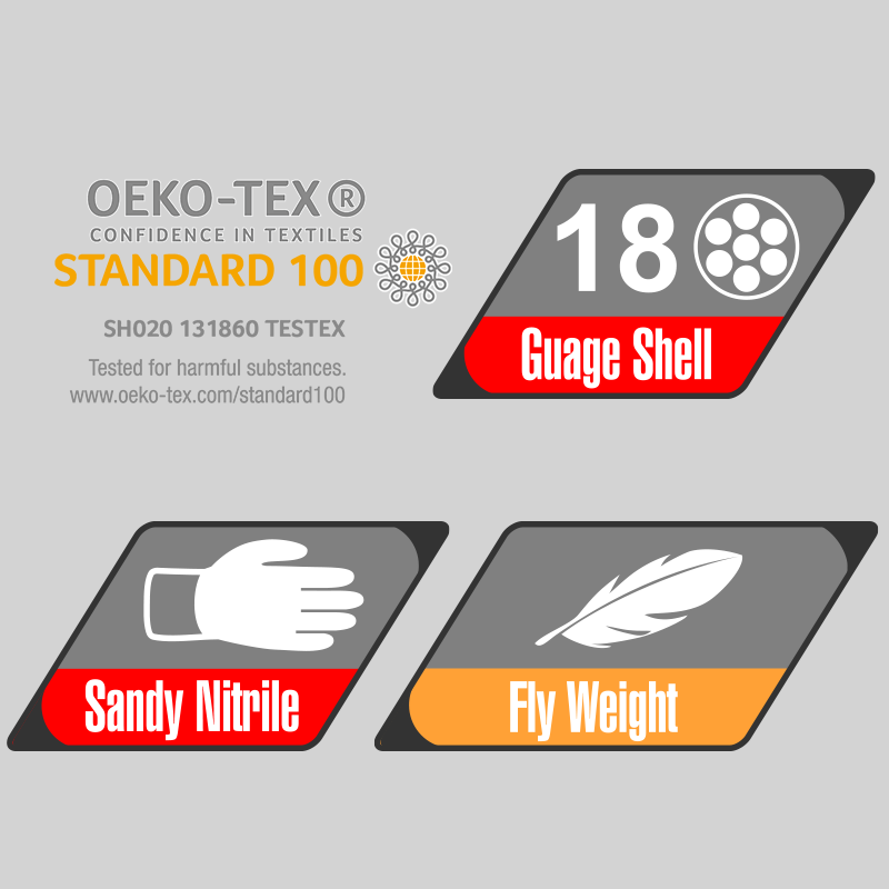 • Great Grip: A raised granular textured Nitrile dipped coating that offers ultimate precision grip of dry, wet & oily apparatuses