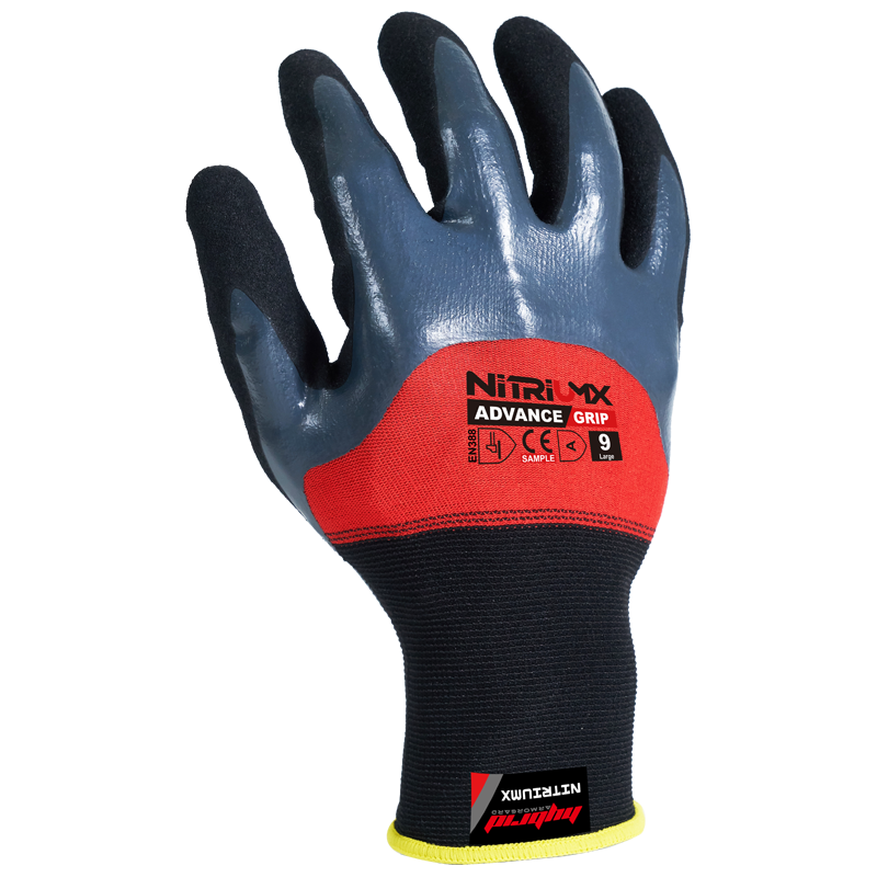 INXS N10824H General Work Gloves, Dual Layered Nitrile Dipped Coating, Sandy Nitrile Grip Palm, 18 Gauge Nylon Shell Liner, Precise Handling for Wet/Dry/Oily Components & Apparatus
