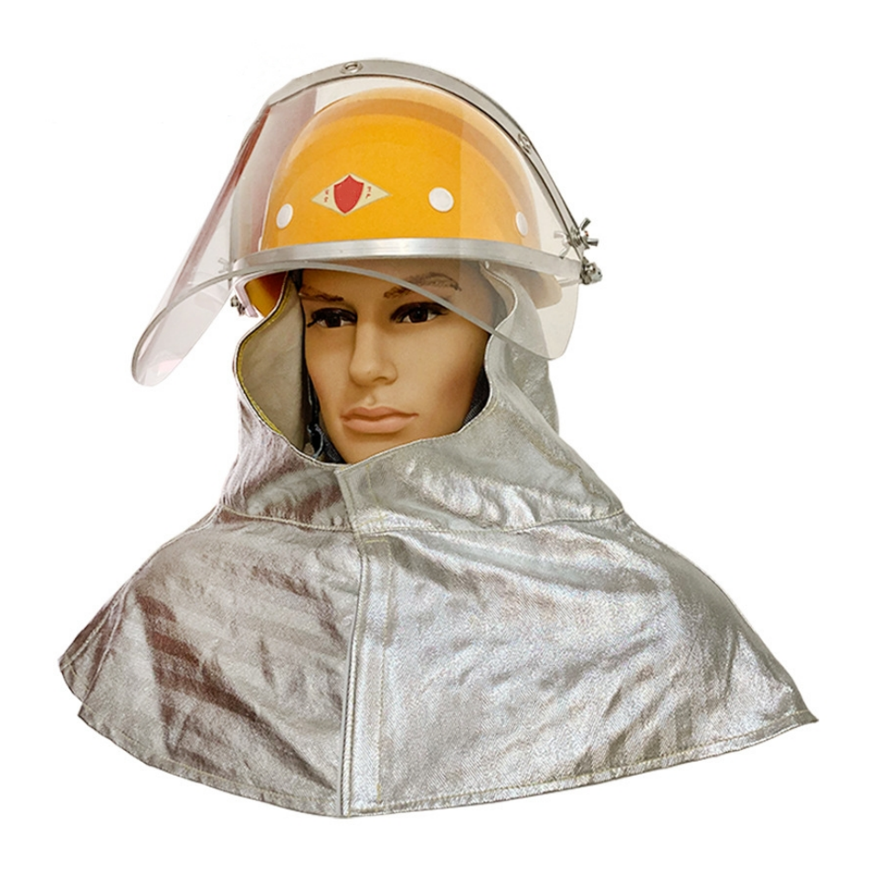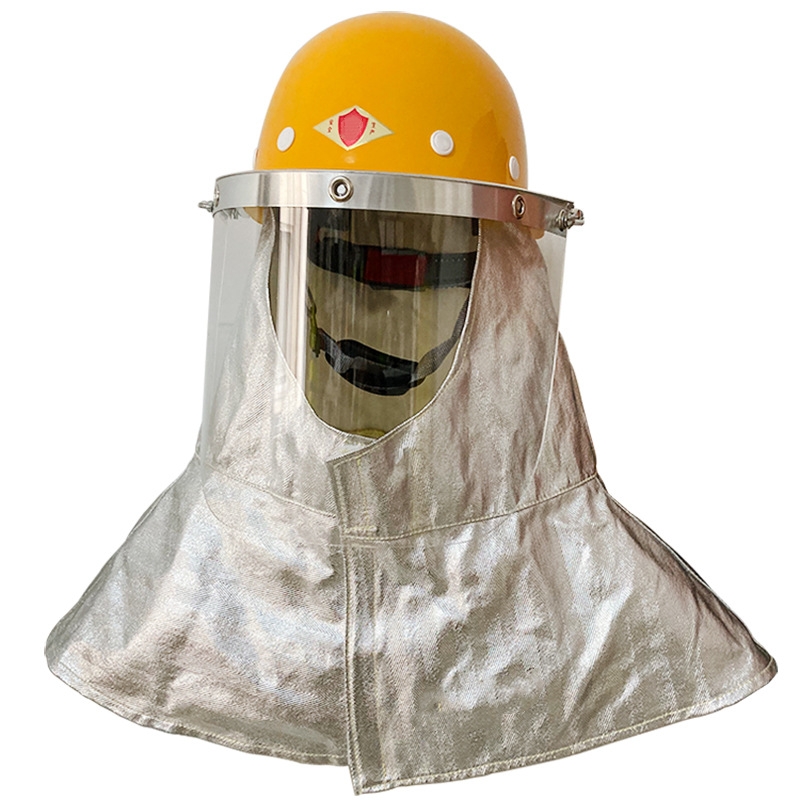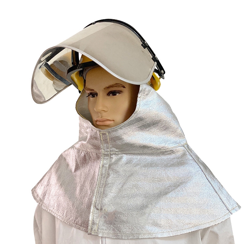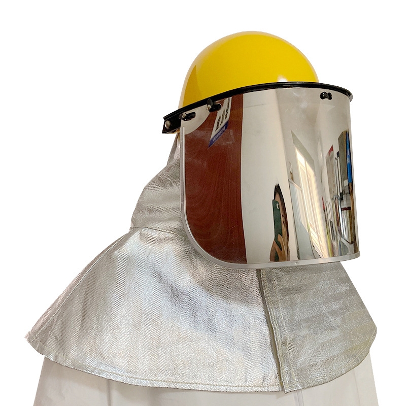 XYEHS Mn-tz2000-1 Aluminum Foil Heat Resistant Safety Hood with External Hard Hat, Shoulder Shawl, Fireproof Full Face Shield Mask, 3mm PC Clear/Aluminized Plating Visor Window, 1000 ℃ Thermal Radiation Resistant