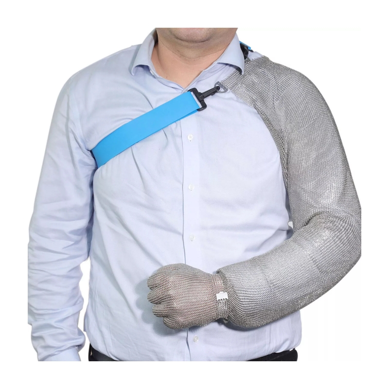 Applications: The shoulder length chain mesh sleeves can help to prevent accidents and provide protection of the arm covered by the metal mesh, protecting knife users from boning and beef and pork cutting operations.
