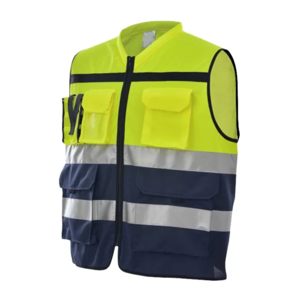 XYEHS A595 High Visibility Polyester Safety Vest with Zipper, 2 Reflective Strips for Construction, Outdoor Work, Traffic, Security Guard