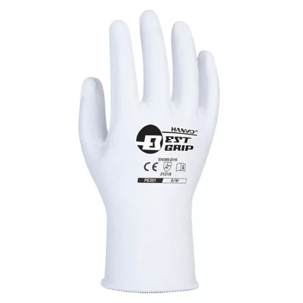 HANVO PE300 Abrasion Resistant General Work Gloves, PU Coated Palm, 13 Gauge Nylon Lining, High Dexerity, Strong Grip