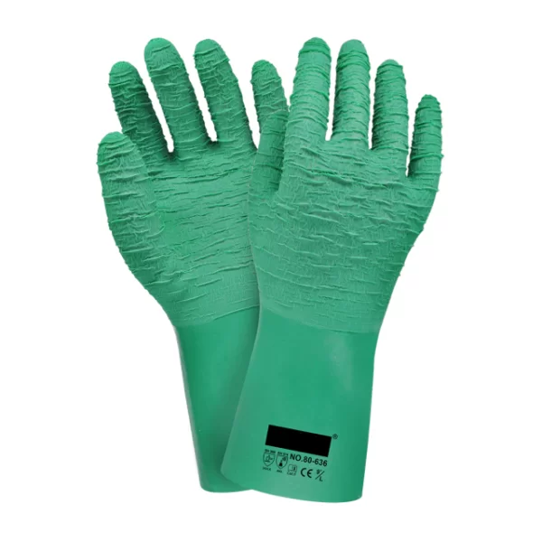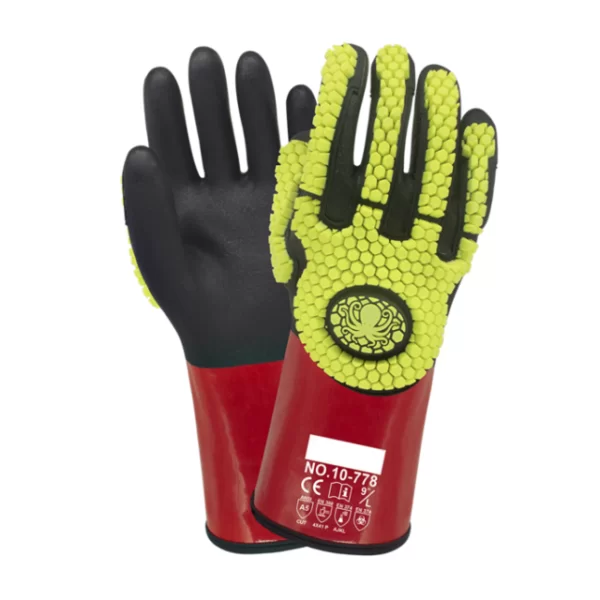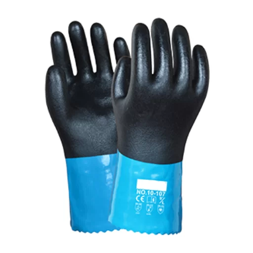 XYEHS 10-248 25cm Chemical Resistant Safety Work Gloves with Fully PVC Coating, Cotton Lining, Knitted Cuff, Oil & Water Resistant