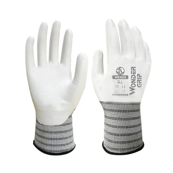 WonderGrip WG-650 Abrasion Resistant General Work Gloves, Nitrile Dipped Palm, 13 Gauge Polyester Shell, High Dexterity, Oil Proof