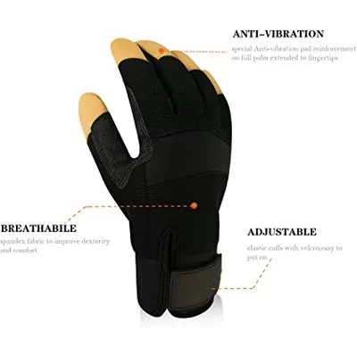 XYEHS Heavy-Duty Anti-Vibration Gloves, Safety Mechanic Work Gloves, Reinforced Palm and Thumb, Heavy Duty, Anti-Abrasion
