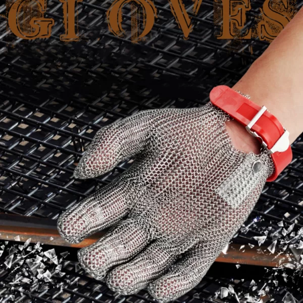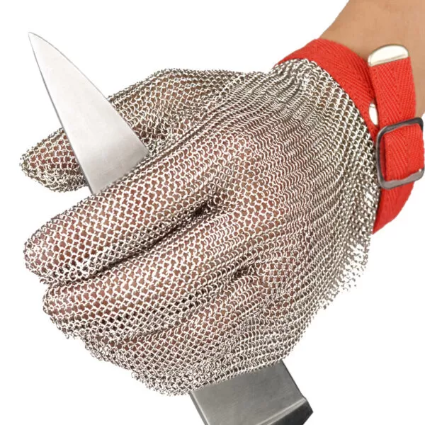XYEHS GS001-R Level 5 316 Stainless Steel Mesh Metal Cut Resistant Glove, Five-Finger Anti-Cut Glove for Food, Glass