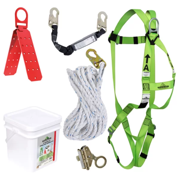 XYEHS PK4-25 Fall Protection Roofer’s Kit Safety Harness with Rope Grab, 25′ Vertical Lifeline, Reusable Roof Bracket