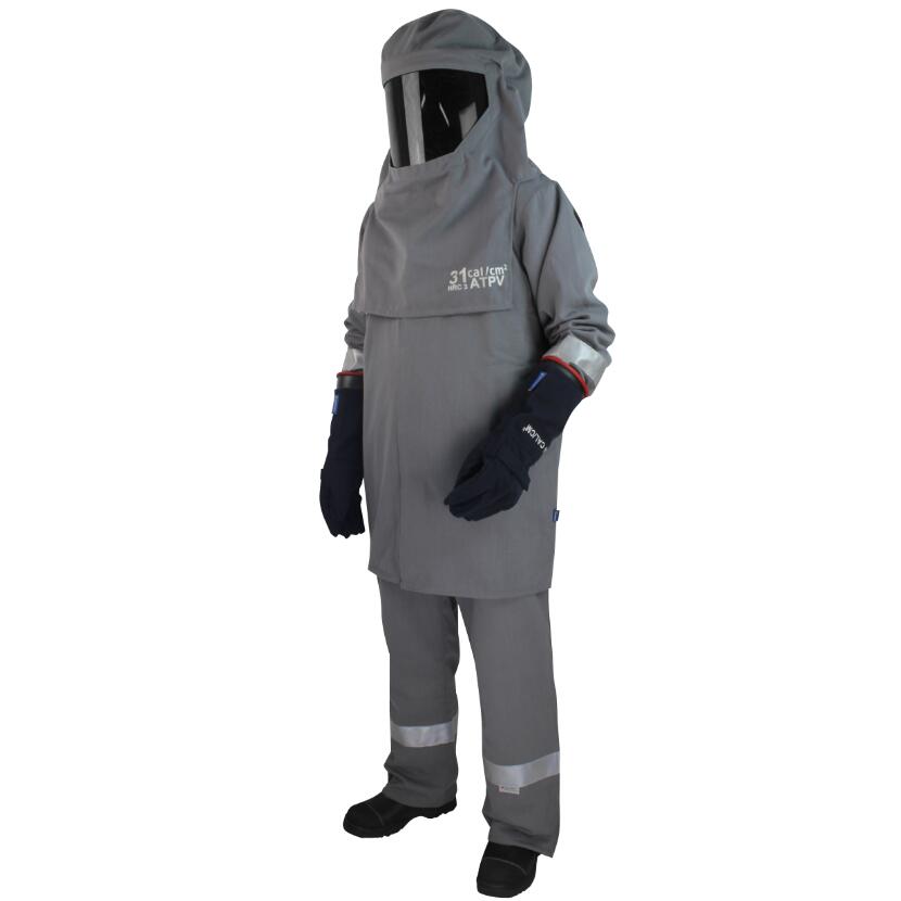 – The kit includes hood (including arc face shield), jacket and bib pants;