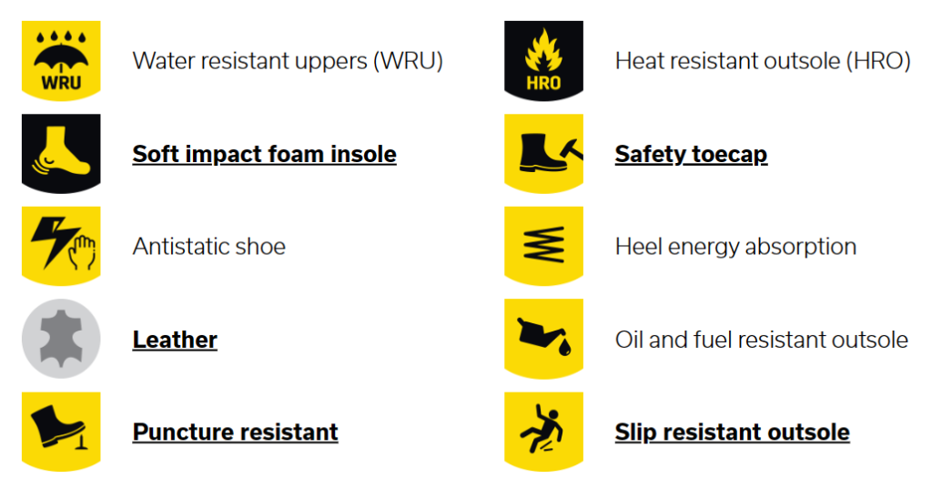 • S3 Water Resistance: S3 safety shoes are suitable for work in an environment with high humidity and presence of oil or hydrocarbons. These shoes also protect against perforation risk of the sole, and foot crushing.