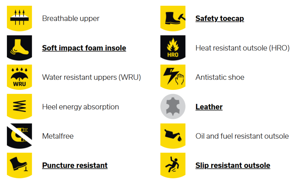 • S3 Water Resistance: S3 safety shoes are suitable for work in an environment with high humidity and presence of oil or hydrocarbons. These shoes also protect against perforation risk of the sole, and foot crushing.