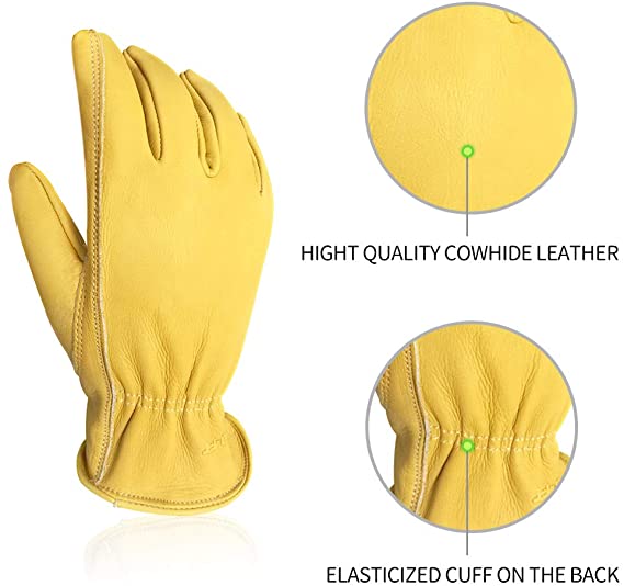 XYEHS Water-Resistant Cowhide Leather Driver Gloves High Abrasion Garden Gloves for Truck Driving Warehouse General Work