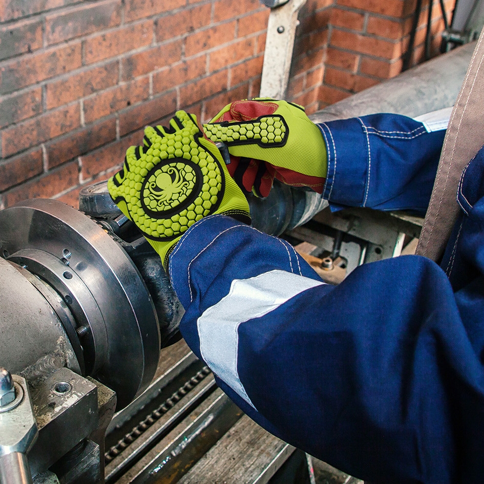 XYEHS 0531 Impact Resistant Mechanical Gloves with Anti-Slip Leather Palm, TPR Knuckle & Fingers