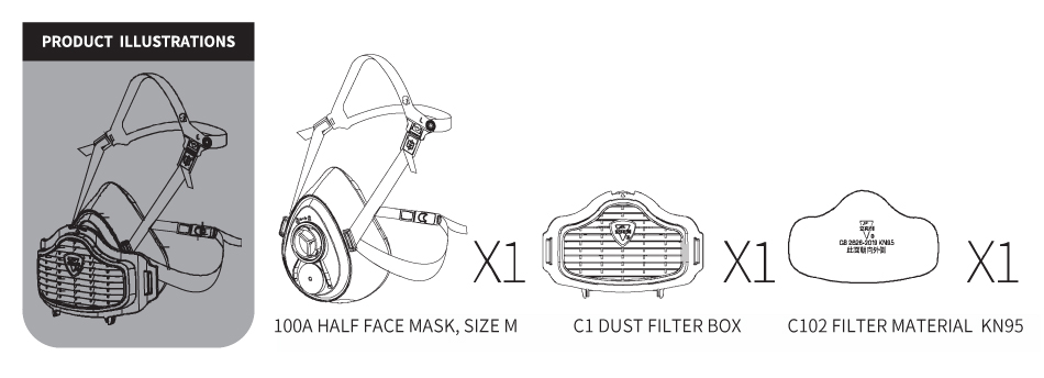 • High-Efficiency Filtration: The half mask provides protection from dust particulates. It accepts C102 filter as a replacement with no less than 95% particulate filtration efficiency.