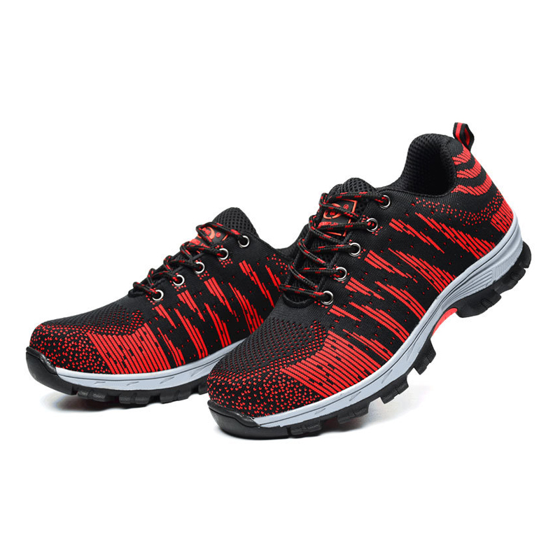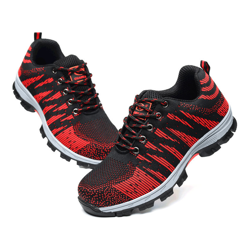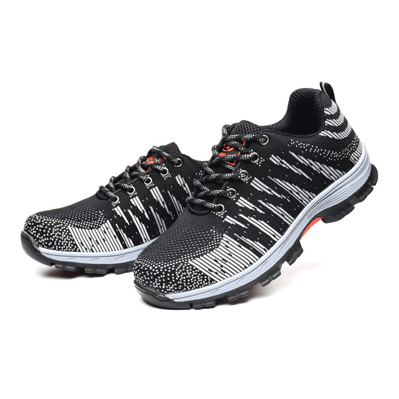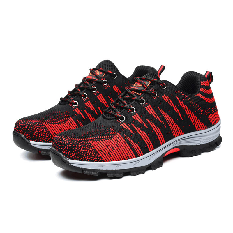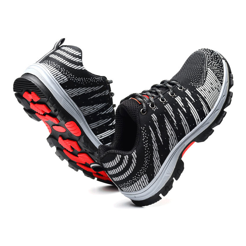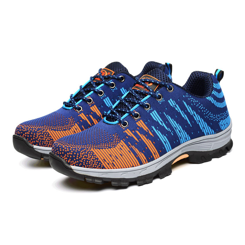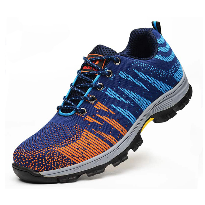 XYEHS 219 Fly Woven Fabric Breathable Safety Work Shoes, Steel Toe Cap & Steel Mid-Sole, Impact & Puncture Resistant Work Sneakers, Anti-Skidding, Rubber Sole, Mesh Lining
