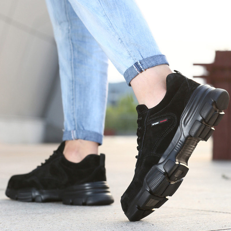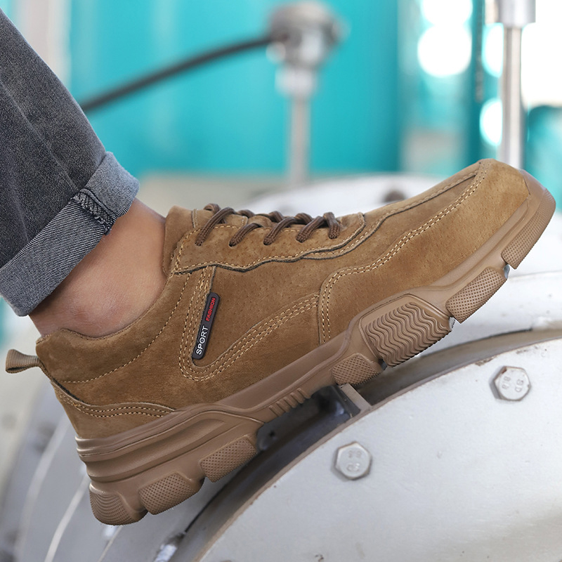 XYEHS 661 Pigskin Leather Safety Work Shoes with EVA Outsole & Aramid Midsole, Steel Toe Cap, Impact & Puncture Resistant Work Sneakers, Anti-Slip Footwear