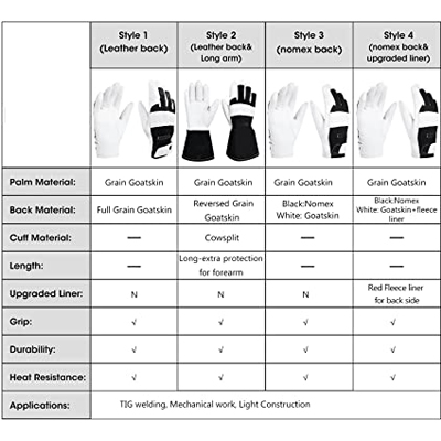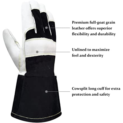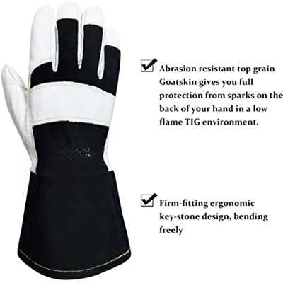 • SPARK RESISTANT: Full grain goat skin electric TIG-welding gloves.