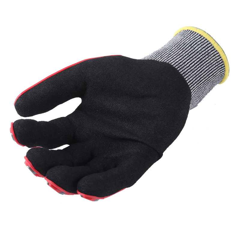 INXS JF292B Cut & Impact Resistant Safety Work Gloves, Sandy Nitrile Coating Palm, TPR Full Finger & Knuckle, 18 Gauge Composite Knitted, Touchscreen Utility Working Gloves, Oil Resistant Mechanic Rigger Gloves