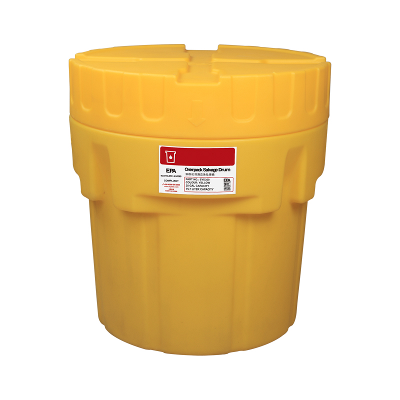 The overpack salvage drum is for emergency treatment of chemical spill. In order to improve the mobility, the flexible sliding rails can be used. Two universal casters can be fixed at any time to prevent bounce in operation.