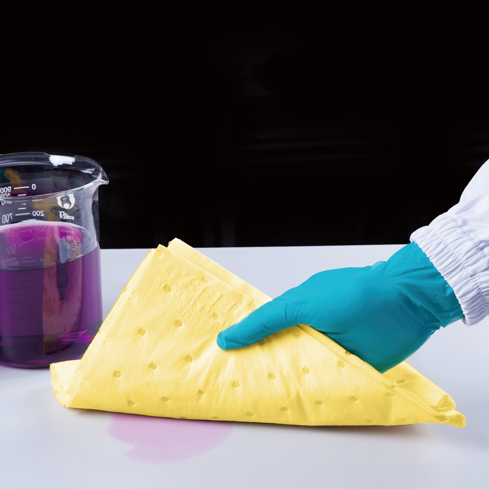 Take out the absorbent cotton sheet and place it on the enclosed oil surface or chemical liquid surface, relying on the strong adsorption force of the absorbent cotton sheet to quickly absorb the oil or chemical;