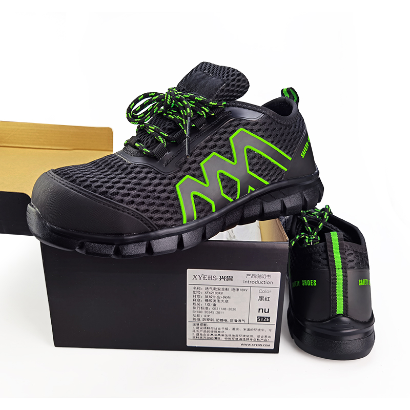 XYEHS XF62100KV Lightweight & Breathable Fly Woven Fabric Safety Shoes, 16KV Anti-Static ,Anti-Slip Work Sneakers, Steel Toe Cap, Rubber Outsole, Impact & Puncture Resistant
